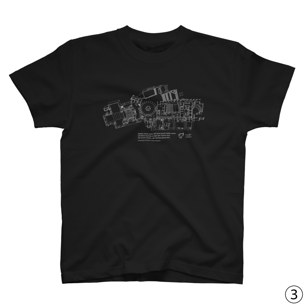 ③建築ドローイングTシャツ(劇場全体図濃色生地)