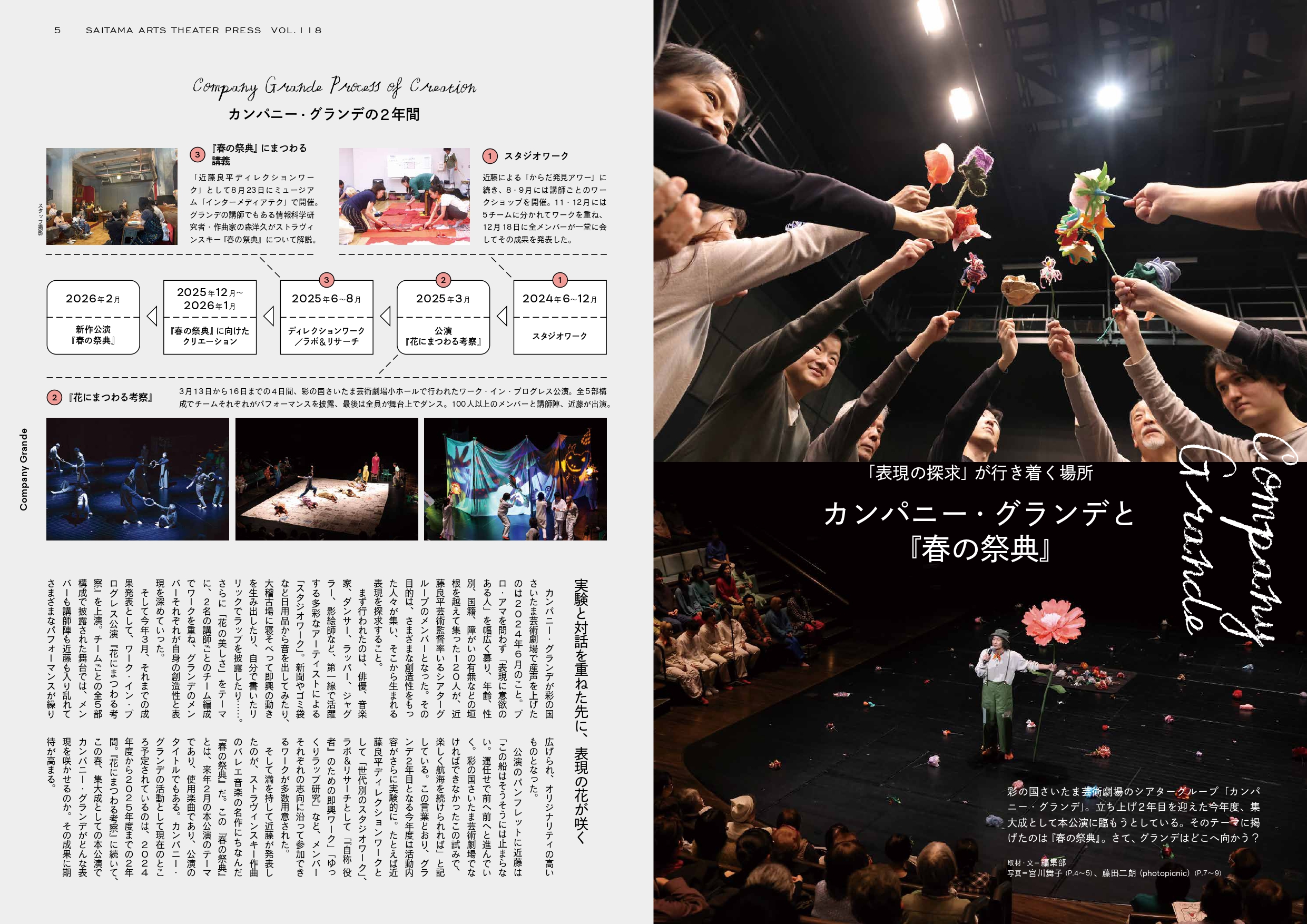 | 関連企画 | 東京大学総合研究博物館 × 彩の国さいたま芸術劇場 特別企画展示『春、音と影のあわいに』 2026/1/27(火)〜2/15(日) ※劇場休館日を除く カンパニー・グランデのクリエーション・チームの一員でもある森洋久が、准教授として自身が所属する東京大学総合研究博物館の収蔵品などをサウンドスケープと合わせてキュレーション。入場無料。 |