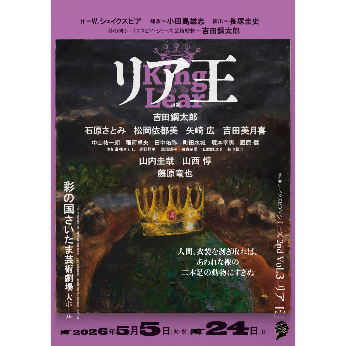 2024年5月に吉田鋼太郎が新たに立ち上げた「彩の国シェイクスピア・シリーズ 2nd」。その第三弾は、シェイクスピアの最高傑作とも評される四大悲劇の一つである『リア王』。