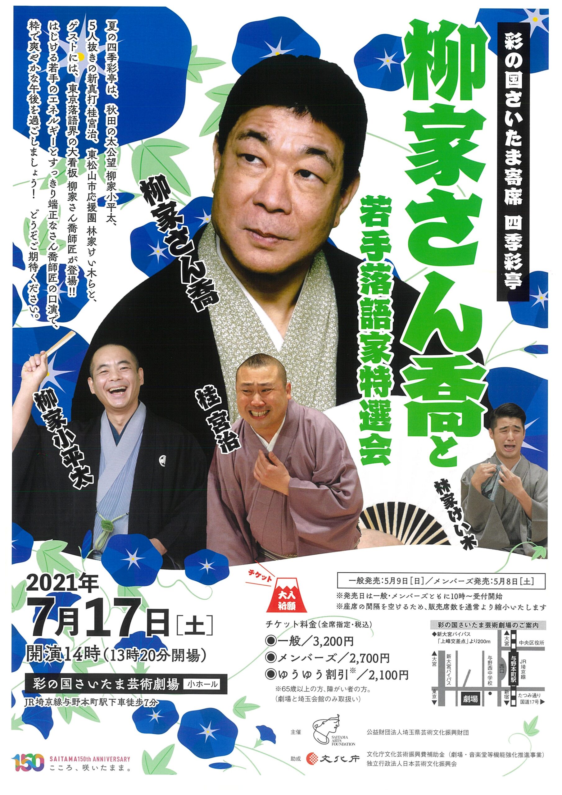 彩の国さいたま寄席 四季彩亭 柳家さん喬と若手落語家特選会