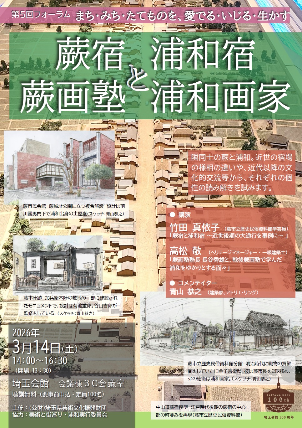 埼玉会館では第5回となるフォーラムを開催します。隣同士の蕨と浦和の、近世の宿場の様相の違いや、近代以降の文化的交流等から、それぞれの個性の読み解きを試みます。