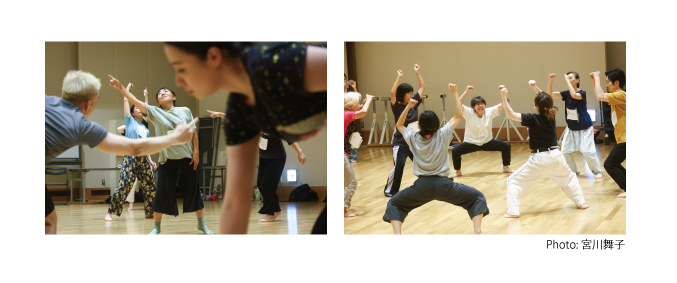 彩の国さいたま芸術劇場を拠点に、芸術監督・近藤良平の呼びかけのもと、年齢、性別、国籍、障がいの有無、プロ・アマなどの垣根を越えて、様々な創造性をもった人々が100名以上集うシアターグループ〈カンパニー・グランデ〉では、演劇・舞踊・音楽・美術など様々な分野で活躍するアーティストを講師に招き、表現の実験・探求を重ねています。