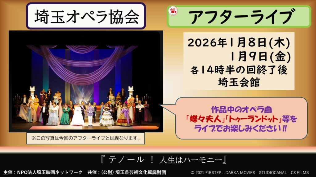 作品中のオペラ曲「蝶々夫人」「トゥーランドット」等を、ライブでお楽しみください!!